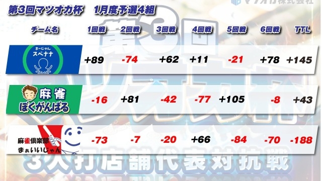 【三麻】第3回マツオカ杯 1月予選4組 【マツオカ株式会社】