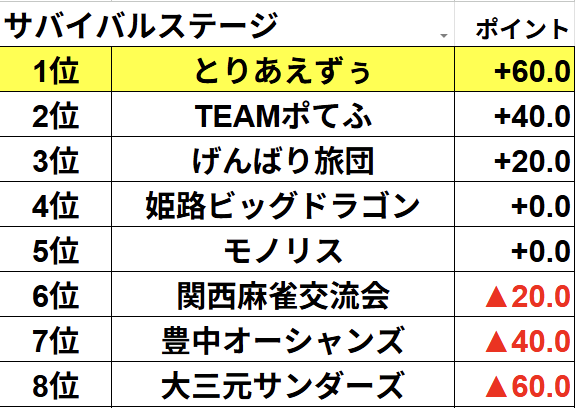 サバイバルステージは合計8チーム!