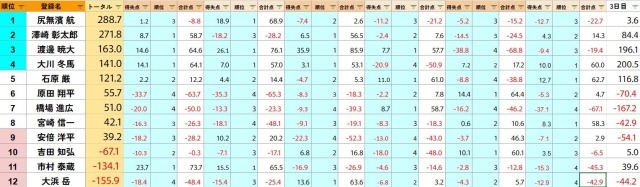 下位4名を除く12名のうち4名
