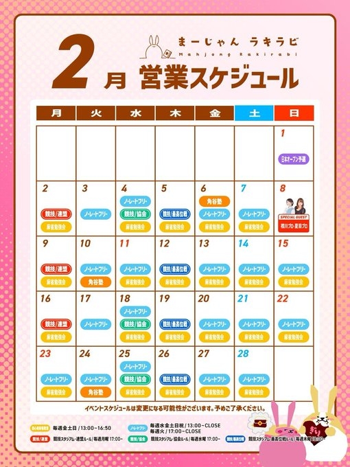大阪 本町[麻雀ラキラビ] 2月スケジュール