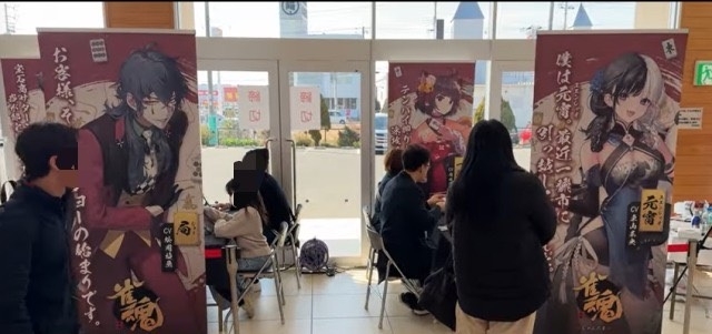 エントランスでは協賛企業、雀魂-じゃんたま-様のブースが参加者をお迎えします。