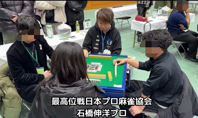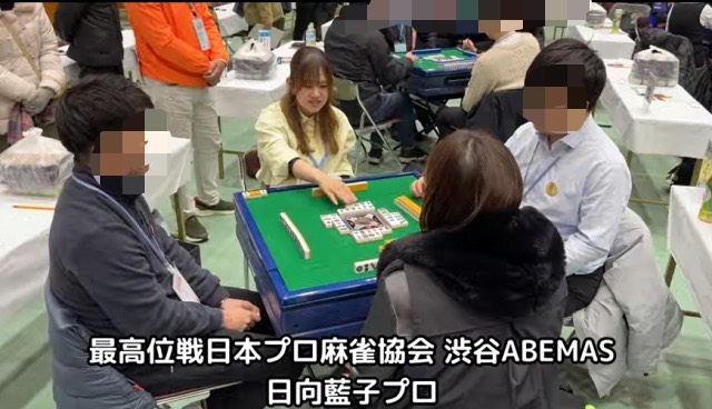 最前列の麻雀プロの卓には一般参加の観戦者が多く来場していました。