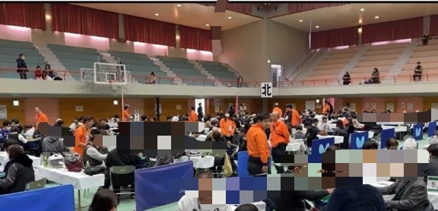 2回戦の対局の間に、各テーブルにお弁当が配られ、昼食の準備が整います。