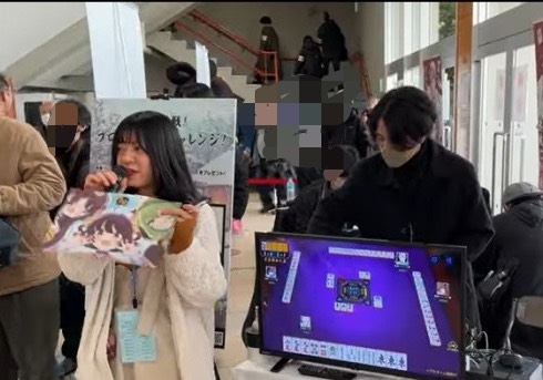 エントランスでも多くの参加者が雀魂ブースで麻雀プロと対局中でした。