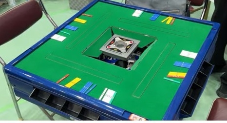 対局終了後は各選手が次の対局がしやすいように点棒を卓上に並べて対局が終了します。