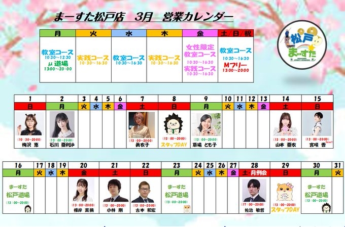 [まーすた松戸店] 【2026年3月営業カレンダー】