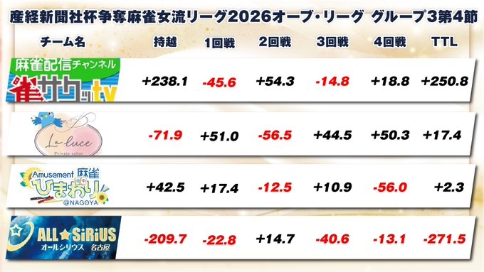 X(旧Twitter) Mリーグ/プロ麻雀リーグ @m_league_ https://x.com/m_league_/status/1988547317306155178 より[このニュースを見る]2025年11月12日(水)