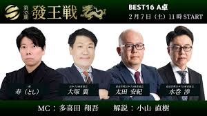 【最高位戦日本プロ麻雀協会】公式YouTubeチャンネル(配信) 第33期發王戦 ベスト16 A卓