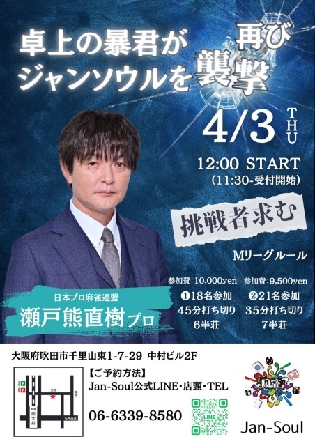 — ジャンソウル(Jan-soul)初心者に優しい麻雀店 大阪吹田関大前 (@Jansoul8) March 22, 2025
