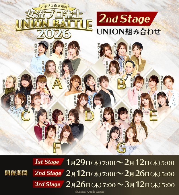 日本プロ麻雀協会所属の人気女流プロ29名が半月交代で登場!4月始まりで来年3月まで使えます!
