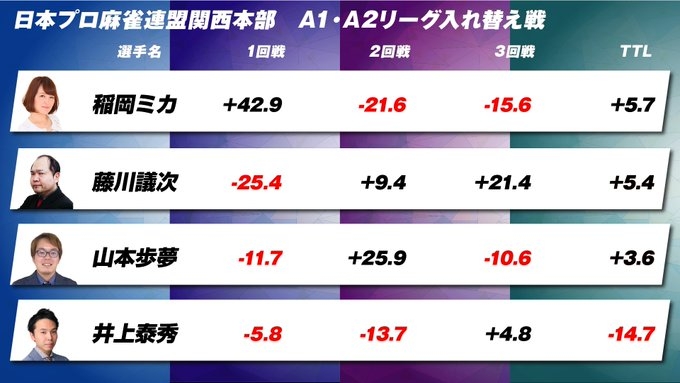 【麻雀LIVE】第24期関西プロリーグ太閤位戦A1-A2入れ替え戦【日本プロ麻雀連盟関西本部】