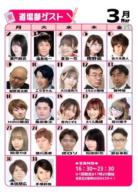2/1(日)12:00~18:00 ※Gリーグ本戦ゲスト
