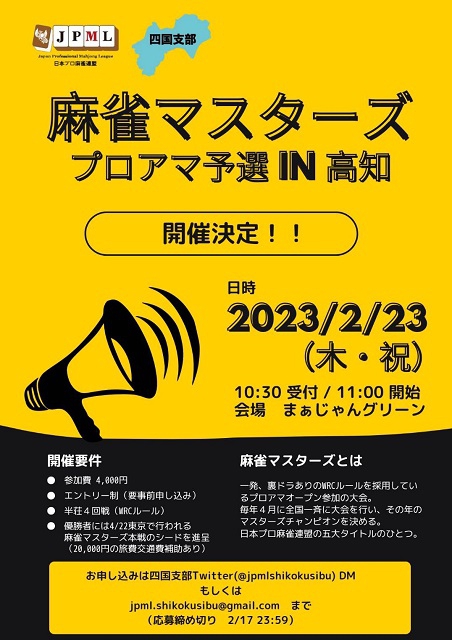 お申込みは日本プロ麻雀連盟 四国支部 Twitter @jpmlshikokusibu