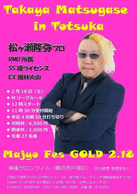 1月から麻将連合梅田道場は (水)(金)の週2日開催になりました
