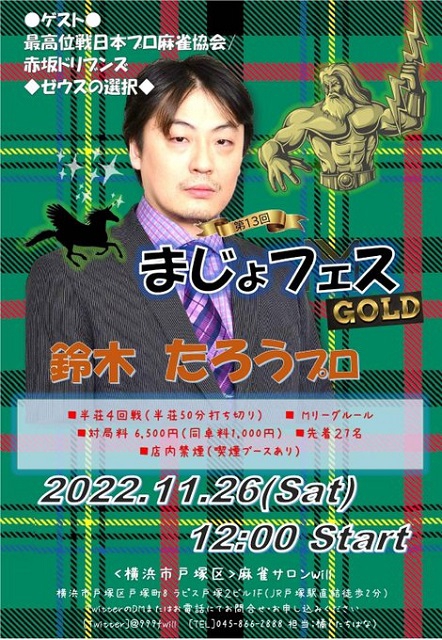 会 場 : 「麻雀スクール アエル」(定休日:日・月曜)