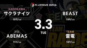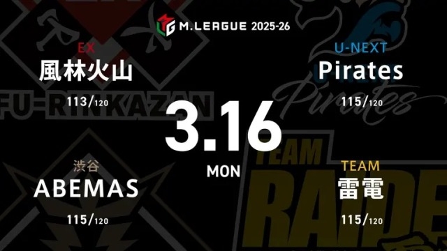 赤坂ドリブンズvsKONAMI麻雀格闘倶楽部vs渋谷ABEMASvsセガサミーフェニックス