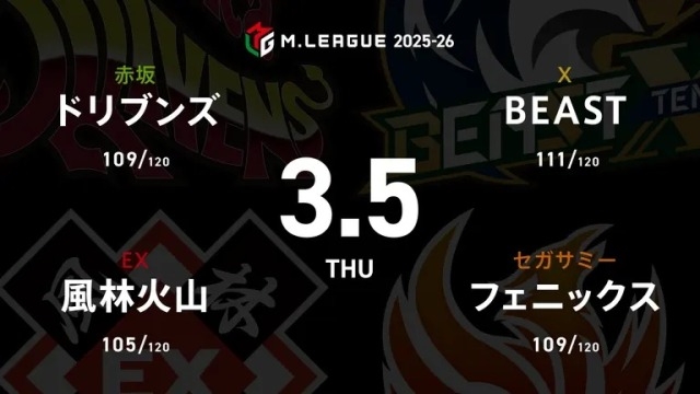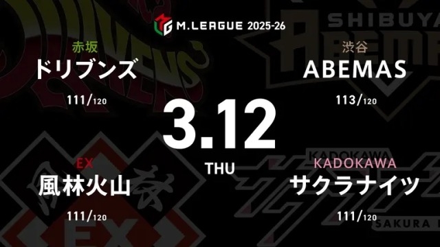 生大和証券 Mリーグ ドリブンズvs風林火山vsフェニックスvsPirates