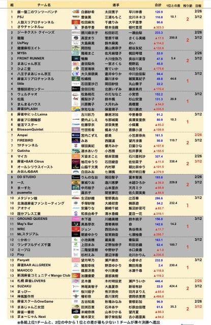 ●リーグ戦を4節以上消化したトータルポイント上位者3名による決勝戦を行う