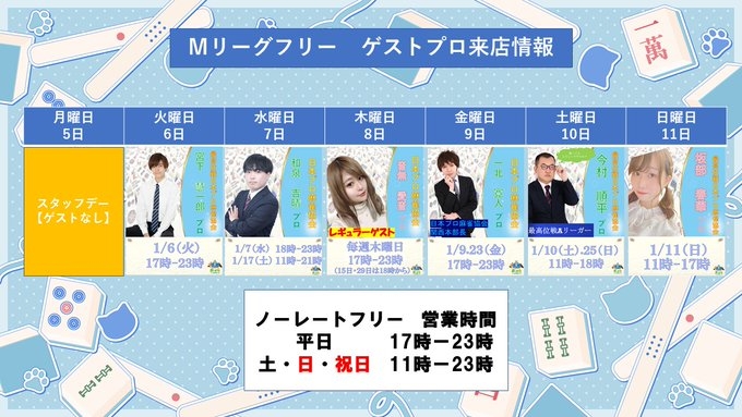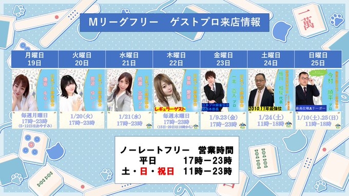 [禁煙健康マージャン まーすた王子店] 【2026年1月ゲストスケジュール】