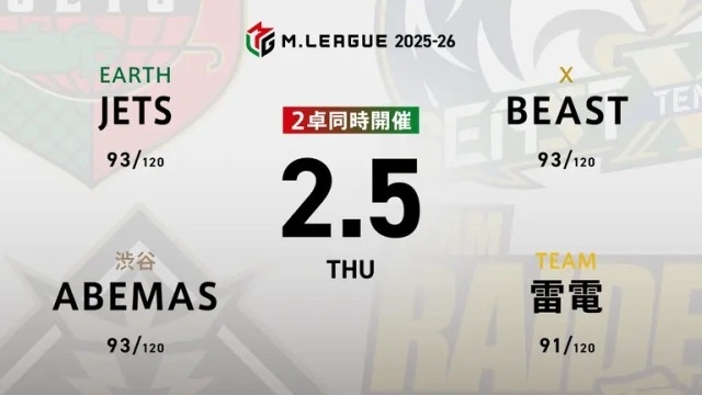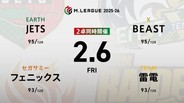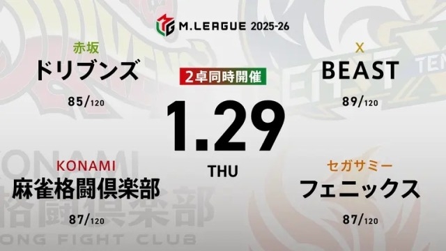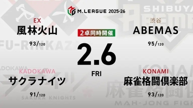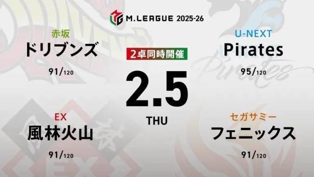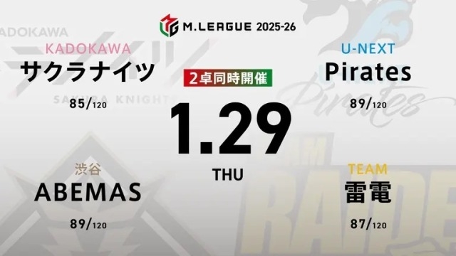 KADOKAWAサクラナイツvsKONAMI麻雀格闘倶楽部vsセガサミーフェニックスvsU-NEXT Pirates