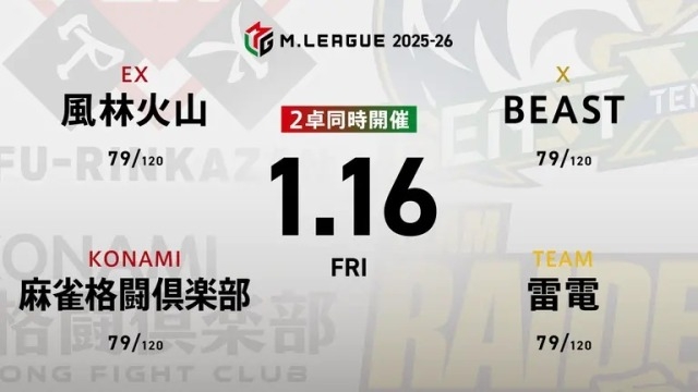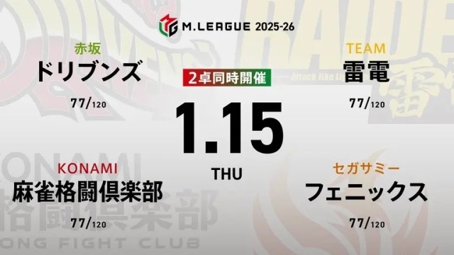 赤坂ドリブンズvsKONAMI麻雀格闘倶楽部vsセガサミーフェニックスvsTEAM RAIDEN / 雷電