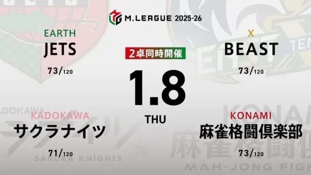 EARTH JETSvsKADOKAWAサクラナイツvsKONAMI麻雀格闘倶楽部vsBEAST X
