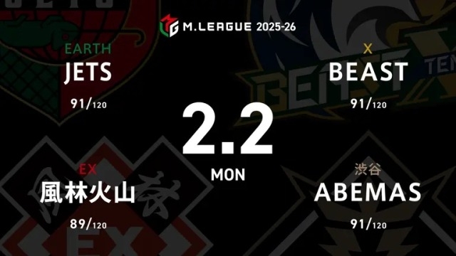大和証券 Mリーグ JETSvsABEMASvs雷電vsBEAST
