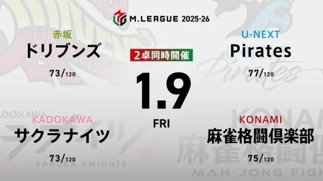 大和証券 Mリーグ ドリブンズvsサクラナイツvs麻雀格闘倶楽部vsパイレーツ