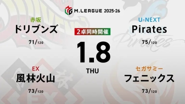 大和証券 Mリーグ ドリブンズvs風林火山vsフェニックスvsPirates
