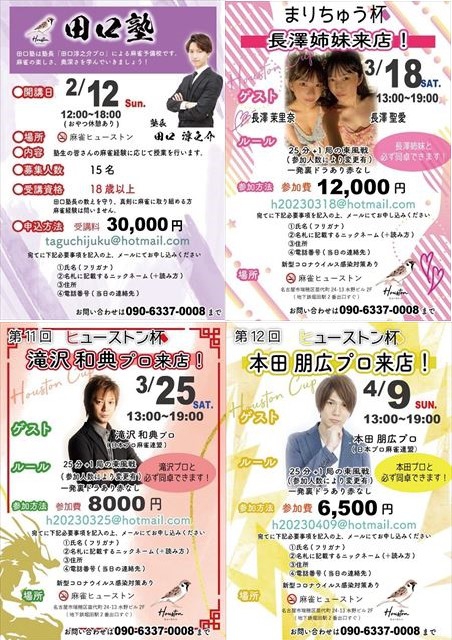 ①15:00~17:00 勉強会/②18:00~23:00 Mリーグルールフリー