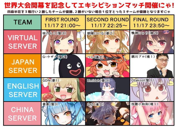 11月12日の対戦は赤坂ドリブンズvsKONAMI 麻雀格闘倶楽部vs渋谷ABEMASvsU-NEXT Pirates