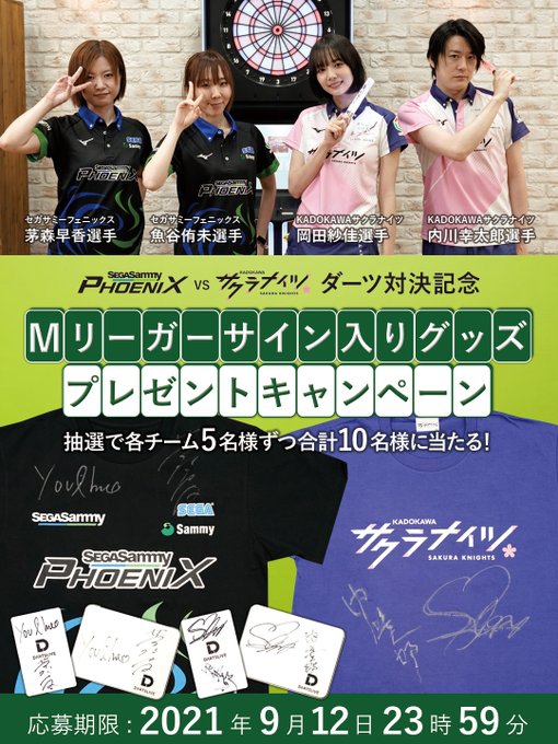 KADOKAWAサクラナイツとセガサミーフェニックスを迎えて撮影したダーツ対決動画の配信が9/3(金)18:00に決定