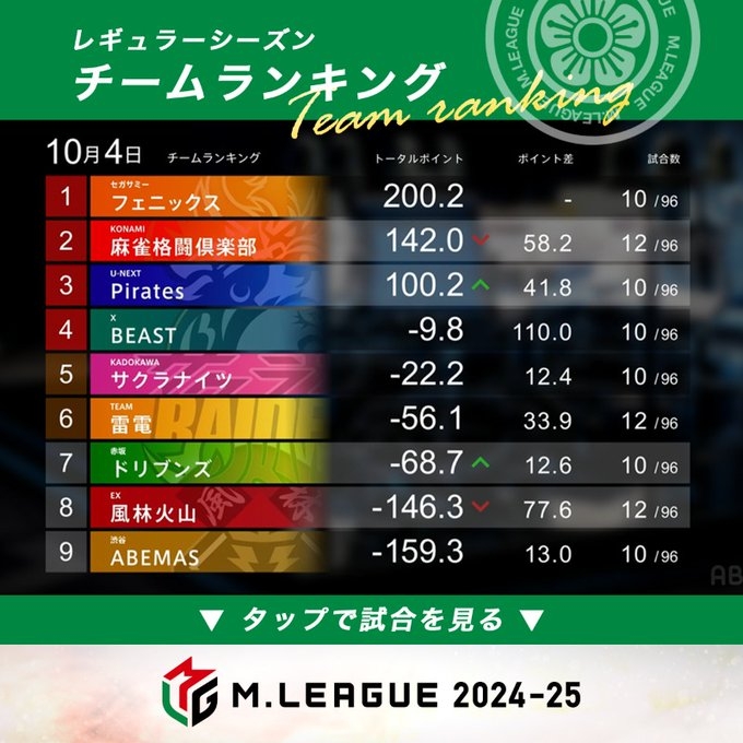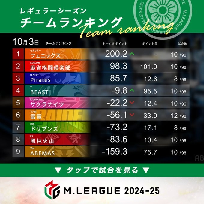 — Mリーグ/プロ麻雀リーグ (@m_league_) October 10, 2024