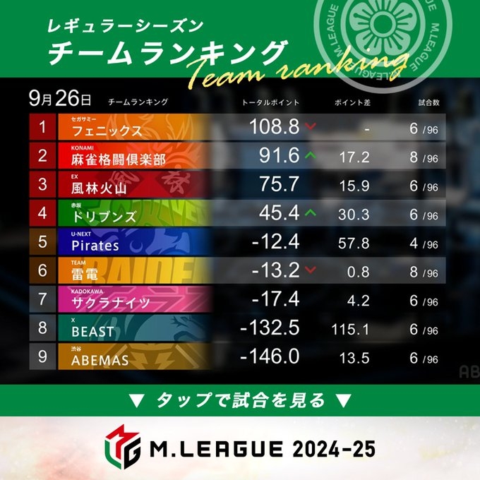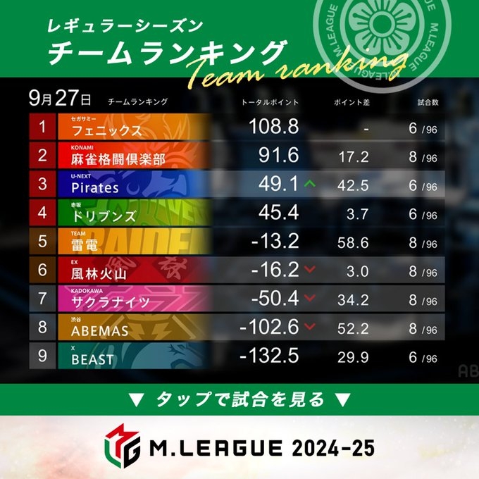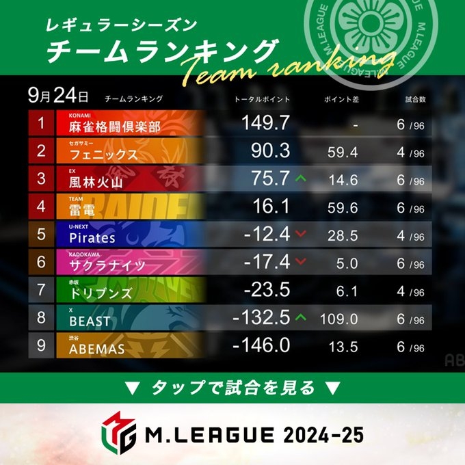 — Mリーグ/プロ麻雀リーグ (@m_league_) September 19, 2024