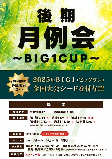 7/14(日)、8/4(日)、9/16(月祝)️、10/13(日)️、11/10(日)️、12/8(日)