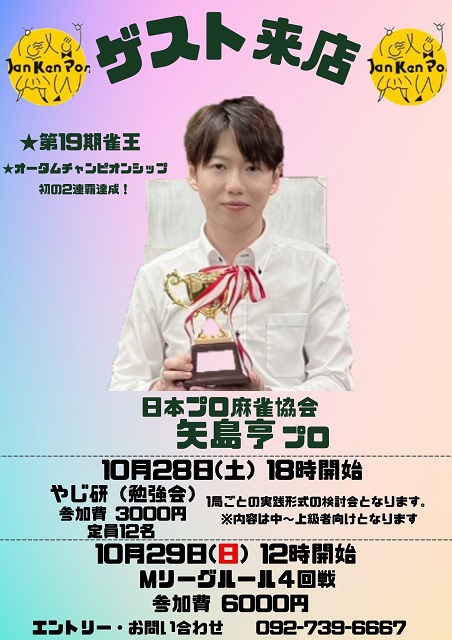 — 雀ケンポン|福岡天神のノーレートフリー雀荘 (@jankenpon1120) October 18, 2023