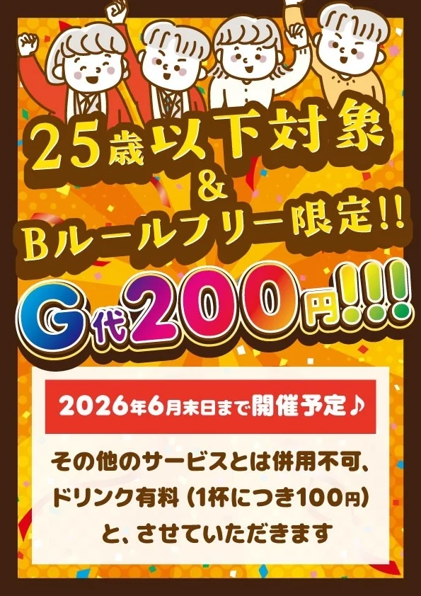 | 料金 (フリー) | Aルール 550円+トップ賞100円 Bルール 350円+トップ賞100円 ※初回ご来店から割引あり! |