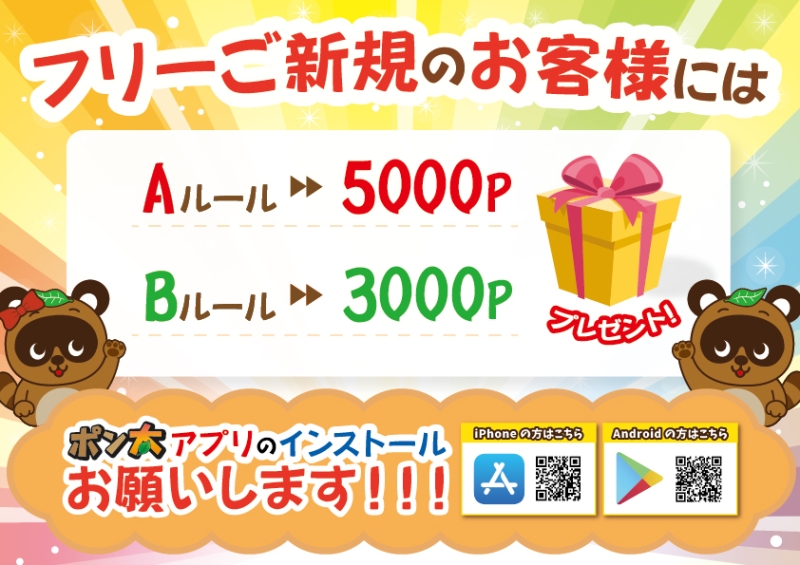 | 料金 (フリー) | Aルール:500円 Bルール:300円(TOP400円) |