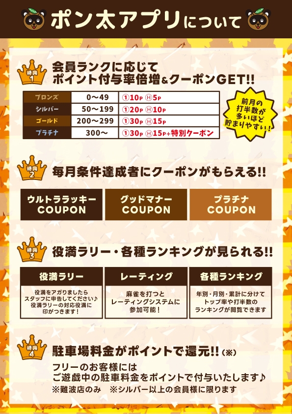 皆様が快適にご遊戯頂けるようにご協力お願いします。