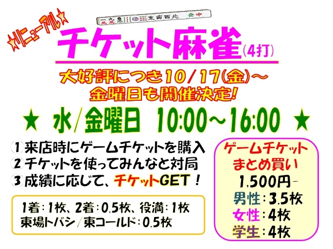 【朗報】4人打チケット制 健康麻雀リニューアルのお知らせ