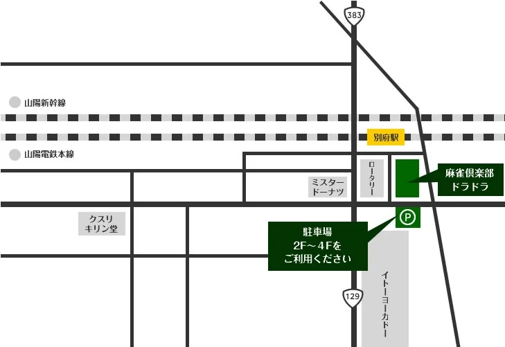 山陽電鉄別府駅前徒歩30秒のところにある麻雀倶楽部ドラドラです。