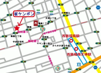 西鉄福岡天神駅より徒歩8分!毎日朝10時より、福岡で唯一のノーレート4人打ちが楽しめます!店内は禁煙で快適に麻雀を楽しめます。