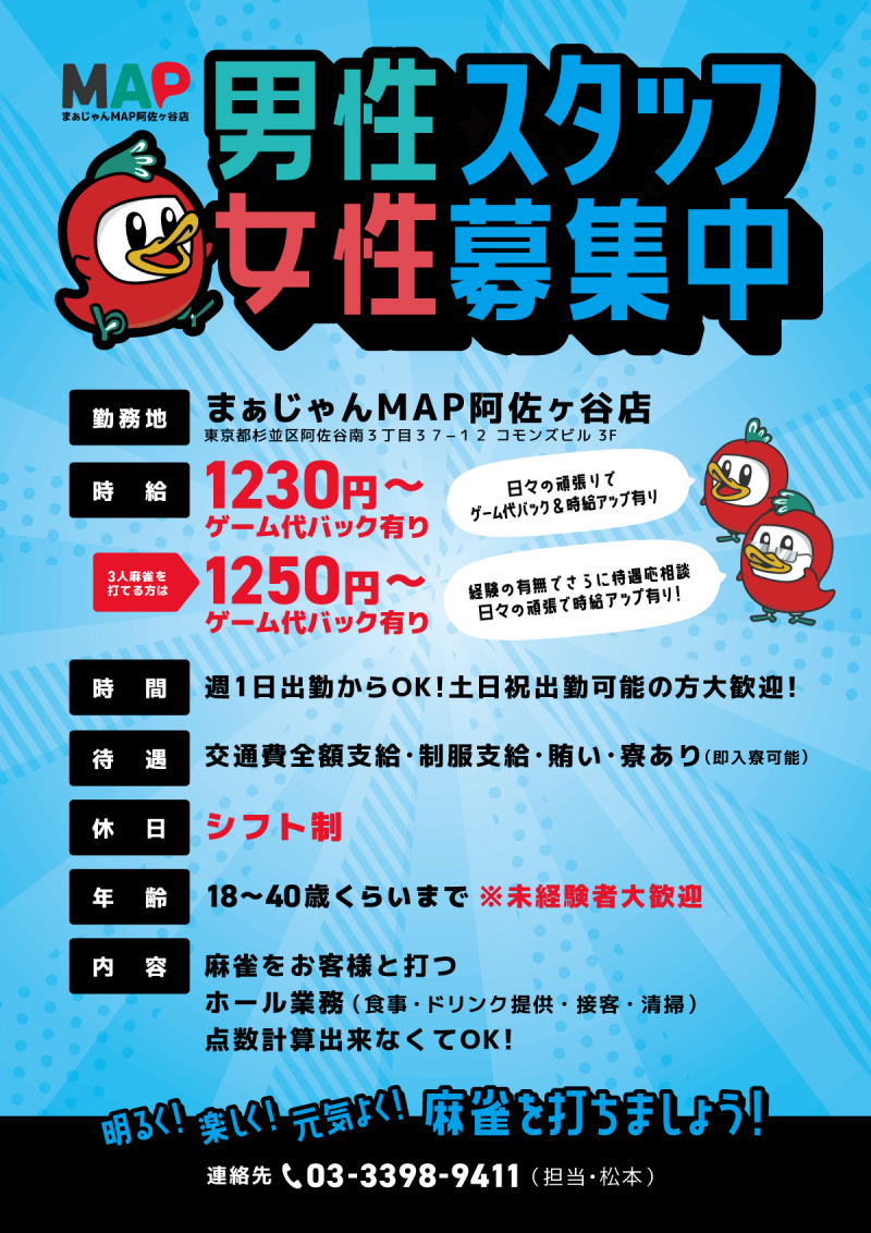 【麻雀MAP阿佐ヶ谷店】アルバイト&正社員募集!!【ゲーム代バック・交通費全額支給有り