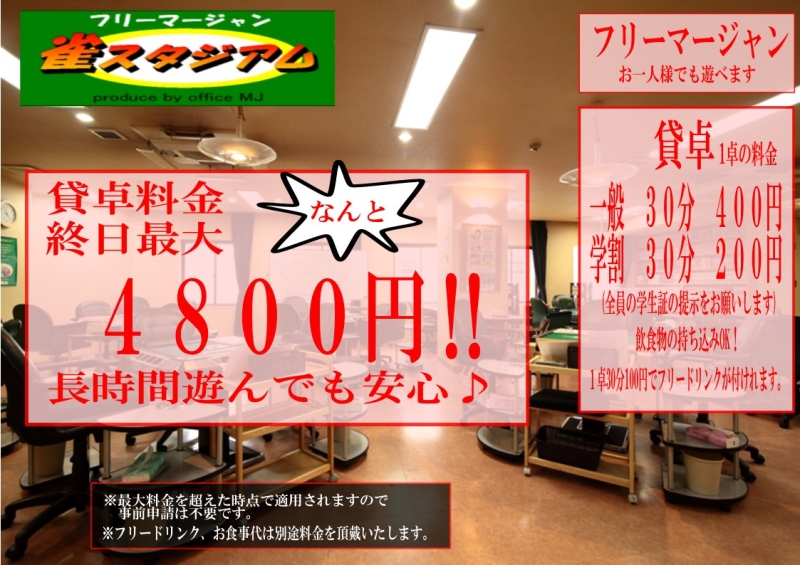 フリー麻雀が初めての方、学生、サラリーマン大歓迎です♪