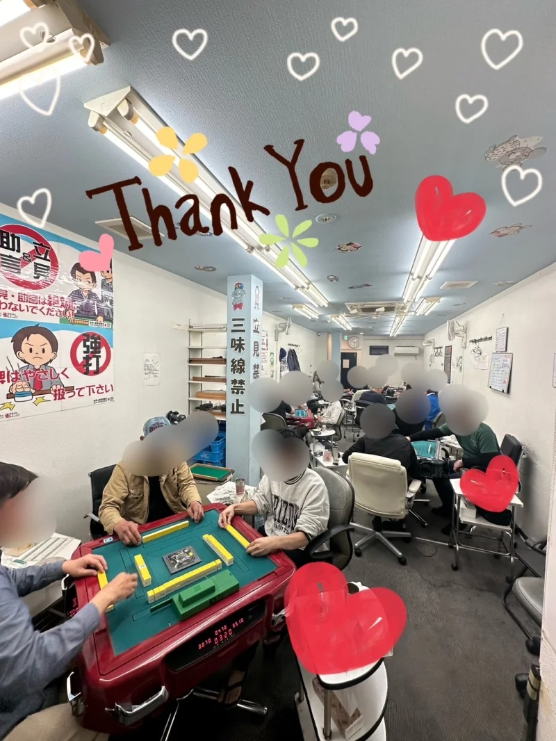 何度かフリーで来店しましたが、比較的ゆっくり打牌される方が多く、マナーにもうるさくないので、麻雀始めたばかりの方にはおすすめのお店です。メンバー地域最弱店という歌い文句通りメンバーの雀力も決して高いわけではなく、のんびり楽しみたい方にも、勝ちにこだわる方にもおすすめのお店です。