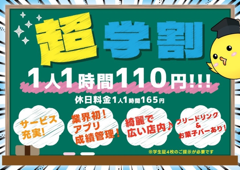 | 料金 (セット) | ・平日 一般…1時間1100円 学生…1時間880円 超学割…1時間440円 ・金曜17時以降、土日祝日 一般…1時間1320円 学生…1時間1100円 超学割…1時間660円 チャージ料600円/卓 ※金曜、祝前日の17時以降は週末料金となります。 ※超学割は人数分の学生証の提示が必要となります。 ※年末年始は特別料金となる事がありますので直接店舗にお問い合わせください。 |