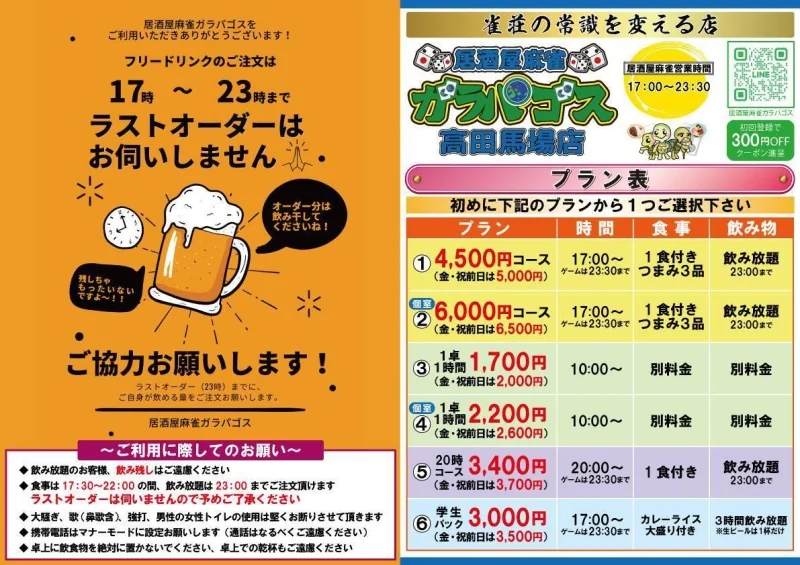ガラパゴス 高田馬場店 プラン&メニューご紹介!
