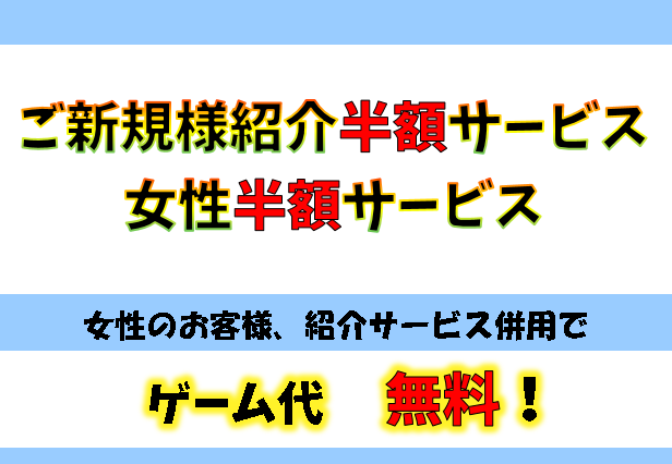 ご新規様は初日のゲーム代が 【終日無料で打ち放題!!】