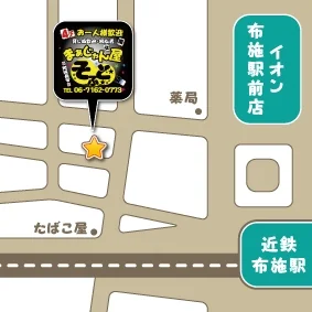 | お店までの道順 | 布施駅北西口を出て目の前の道路を横断してください。 ラーメン屋さんの二両半様を過ぎたところの路地を左折して、真っ直ぐ行くとアーケードがあるのでアーケードを斜めに突き抜けて50メートル程先の右手の4階が当店になります! |