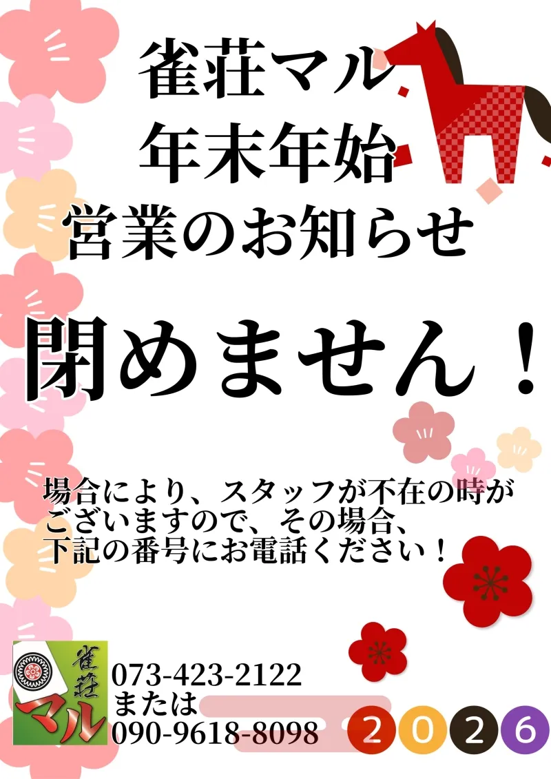 雀荘マル、年末年始の営業のお知らせ!
